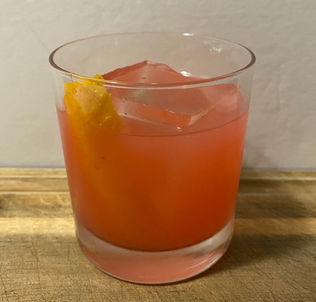 Add all ingredients into a shaker with ice. Shake. Strain into a lowball glass filled with ice. Garnish with an orange peel.
